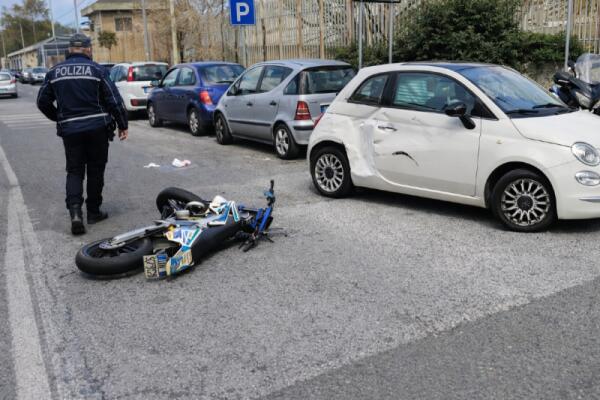Incidente nello Zir di Messina: scontro tra Fiat 500 e moto, 18enne con frattura a una gamba